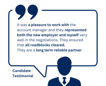 • Maintaining Candidate Trust & Interest: The Account manager maintained constant communication with the candidates and kept their interest and maintained their trust throughout the hiring process. This was particularly important to retain the interest of senior executive-level clients. Our account manager’s attention to client-candidate relations is evidenced by the testimonial that the candidate has given as seen in Figure 2.